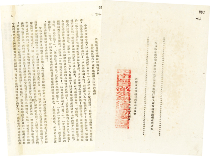 1953年3月4日,西南区贯彻婚姻法运动委员会发布《关于认真执行中央贯彻婚姻法指示的通知》(部分)。