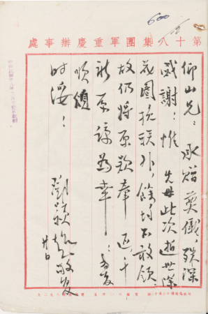仰山兄:承赠奠仪,殊深感谢!惟先母此次逝世,除花圈挽联外,余均不敢领,故仍将原款奉还,千祈原谅为幸!专复。顺颂时绥!邓颖超敬复。廿日。