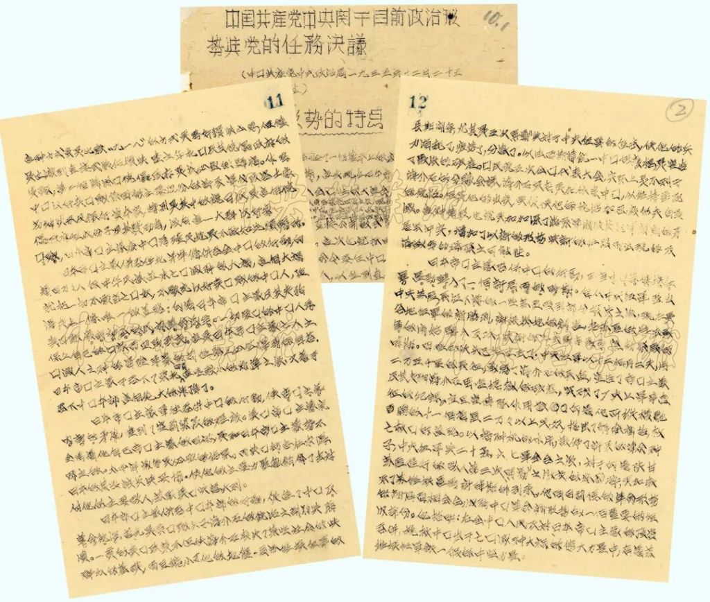 瓦窑堡会议通过的《中央关于目前政治形势与党的任务决议》(部分)